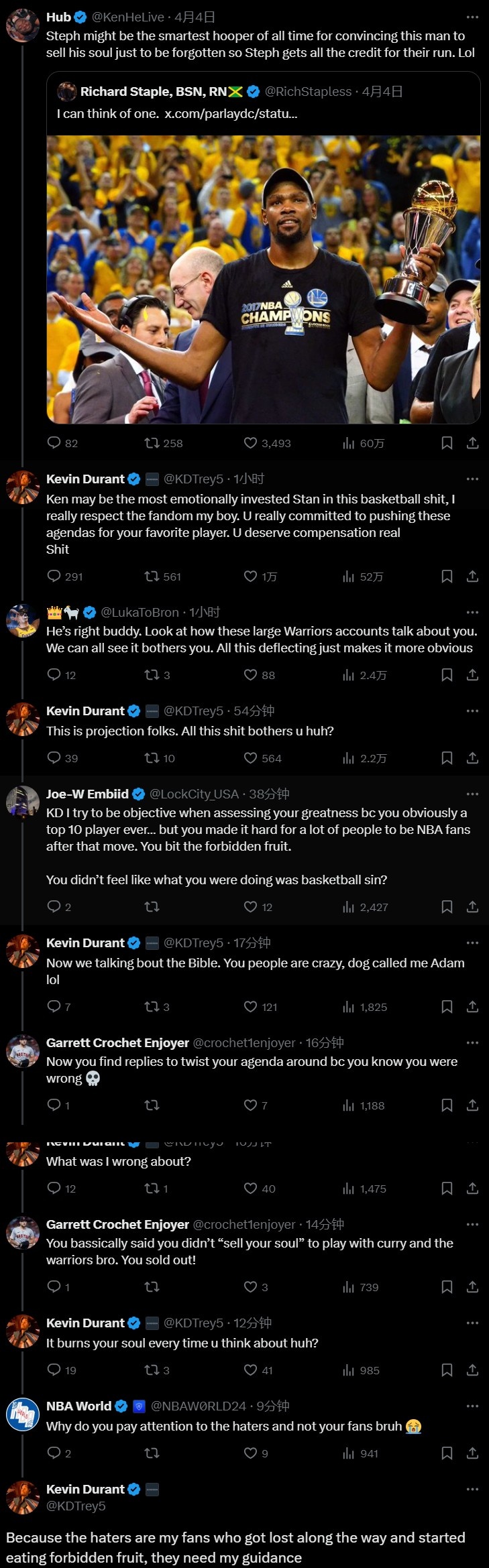 4月7日讯 今日,杜兰特登上大号,在推特上和网友们对线。