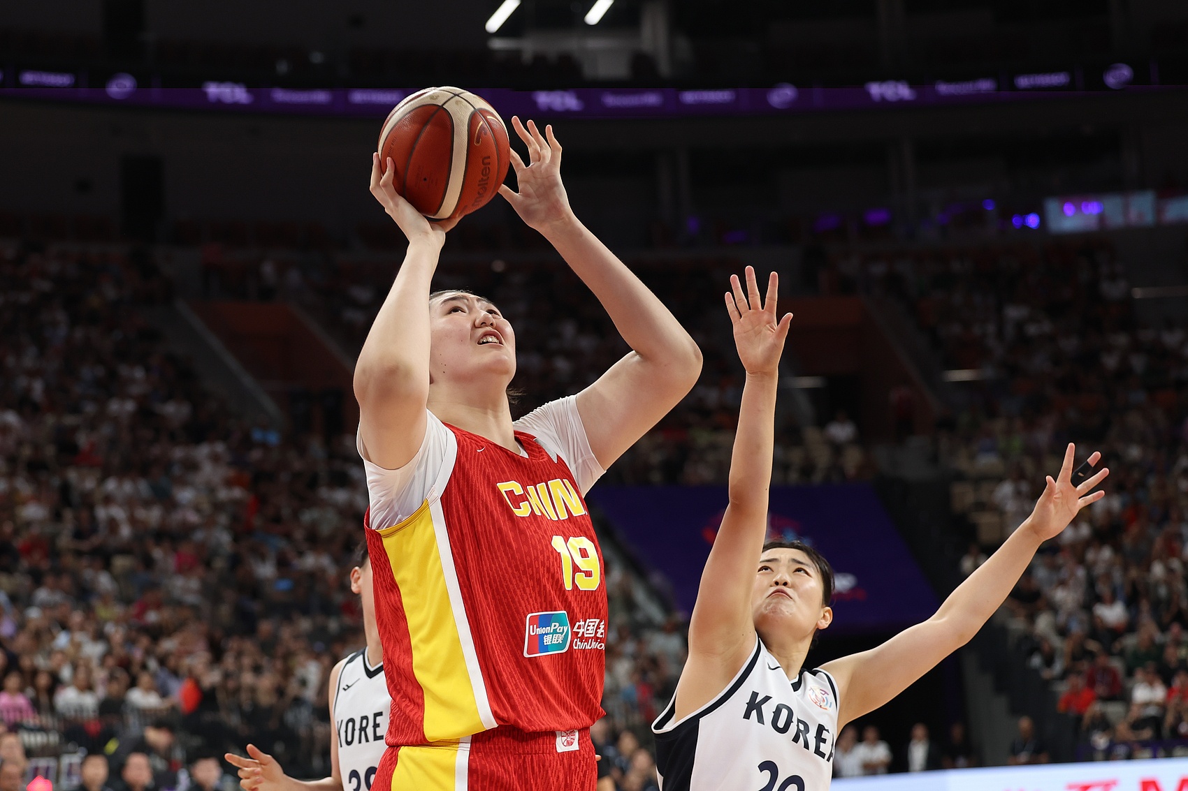 下半场,双塔首发,联防,铺天盖地。韩国队只能赌跳投。