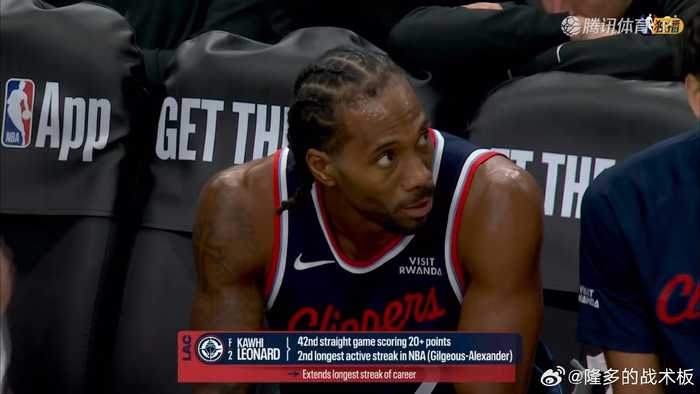 伦纳德半场21分,已经连续42场比赛得分上20 #尼克斯vs快船#