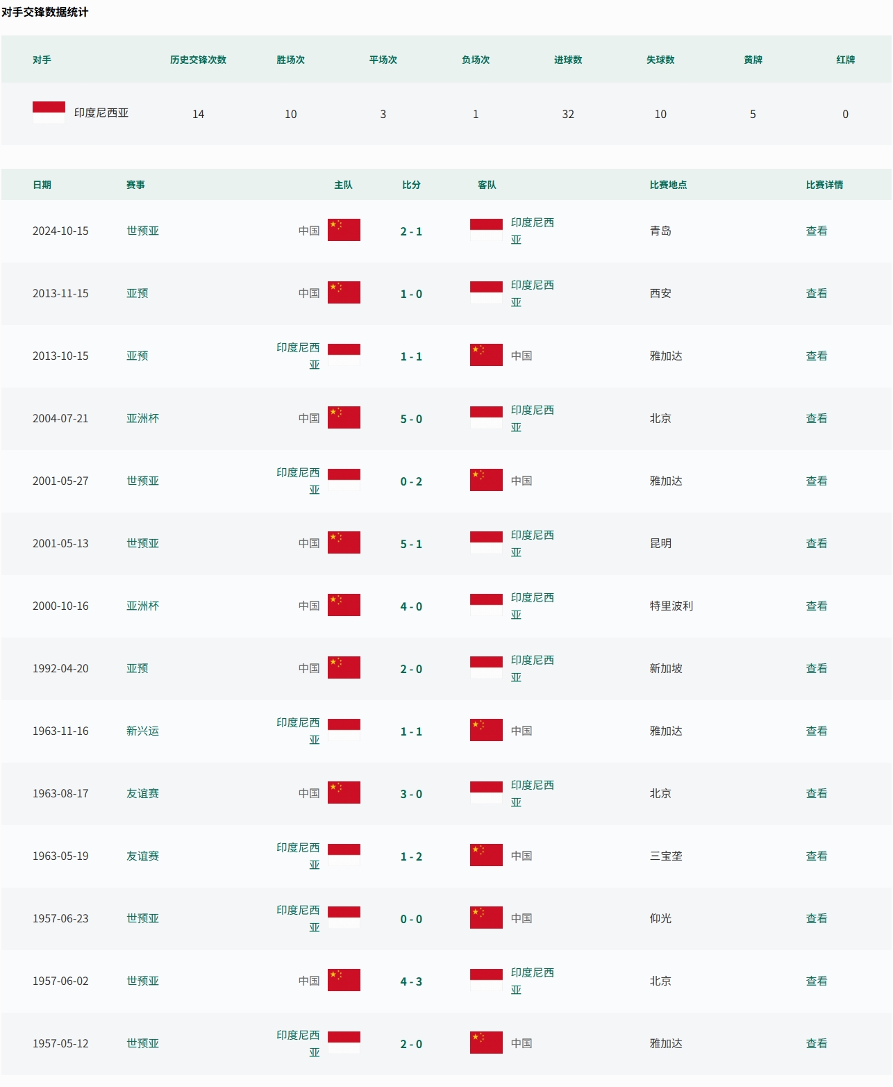 附国足过往与印尼交手纪录(数据来源:中国足协官网):
