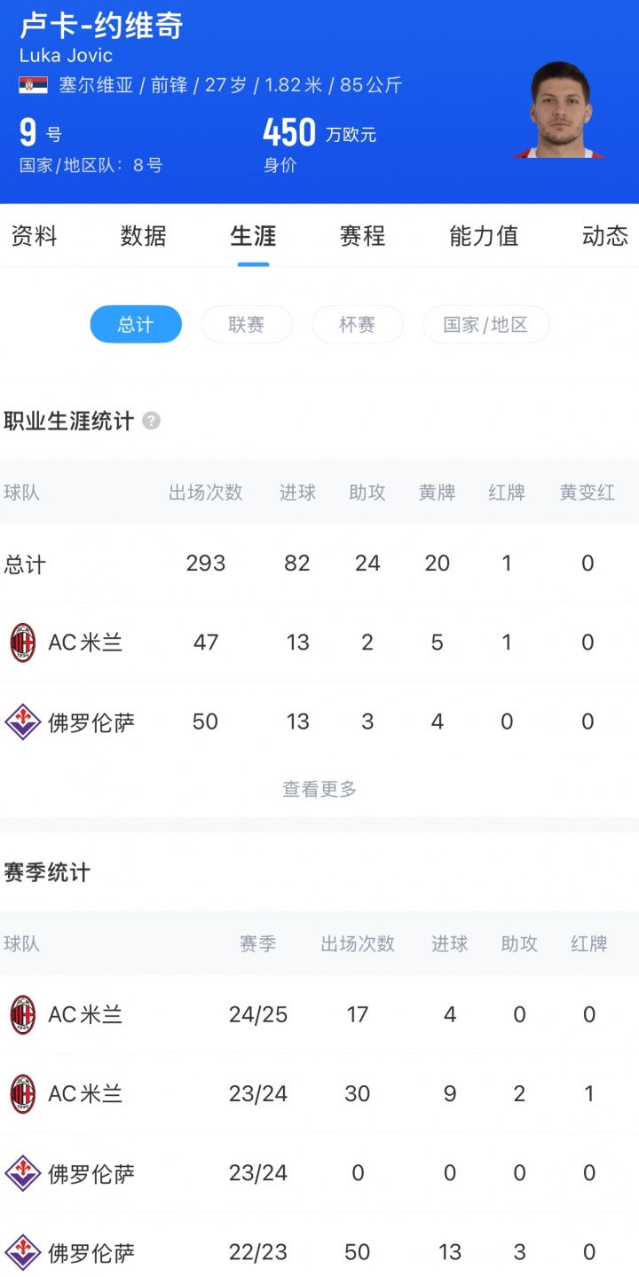 2023年夏窗,米兰花费50万欧元的转会费,从佛罗伦萨签下约维奇。27岁的约维奇本赛季为米兰出场17次打进4球。球员德转身价仅为450万欧,他巅峰时曾达到过6000万欧。