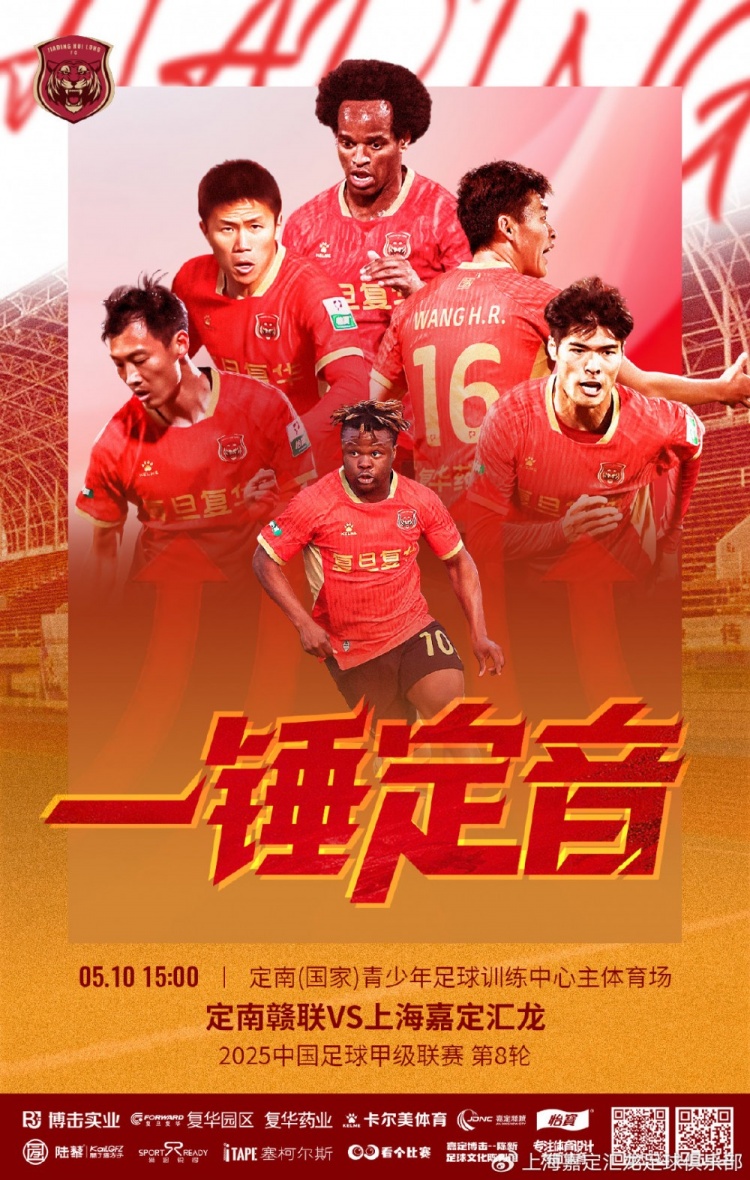 赛事海报比赛信息2025华润饮料中国足球甲级联赛第8轮定南赣联VS上海嘉定汇龙时间:2025.5.10(周六) 15:00地点:江西省定南(国...