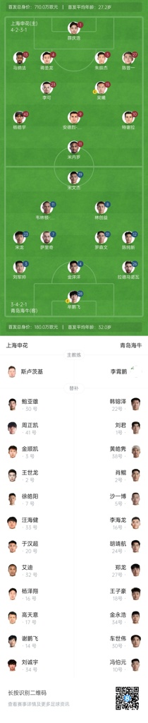 04月16日讯 北京时间20:00,中超第7轮,上海申花vs青岛海牛。赛前,双方公布首发名单。上海申花首发:1-薛庆浩、4-蒋圣龙、5-朱辰杰、13-...