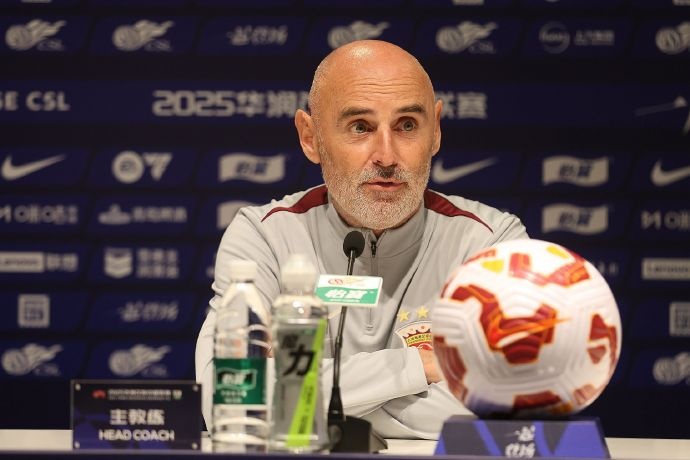 2025华润饮料中超联赛上海海港vs长春亚泰赛前发布会,主教练穆斯卡特介绍备战情况:“我们对第一场比赛进行了分析总结和讨论,大家都认为球...